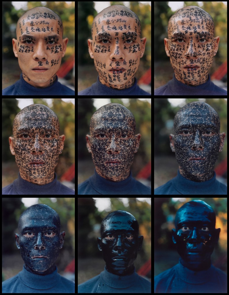 It is interesting to note the work of another artist, Zhang Huan, in contrast to Guoโs idea of self-translation. Zhang Huan, a Chinese performance artist, lived in New York for a time, knowing little English. Here his work began to incorporate language into his performance, the performance of himself in a new landscape. Text, body, and image become one in the photographs of his piece โFamily Treeโ:
