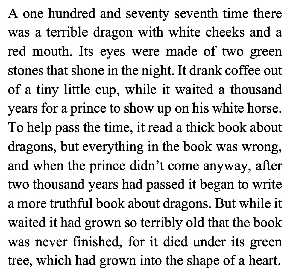By turns amusing, poetic, and deeply weird, the stories made me laugh out loud. Reading them, I felt new space unfold in my mind. I felt my imagination stretch its muscles.