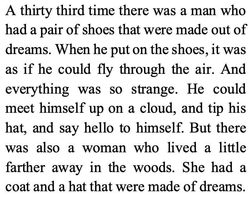 And so there I was that summer day. I started translating that afternoon, just so I could regale my family over dinner with what I had found. There’s a potato that doesn’t want to be a potato, I told them. There’s a duck who sells a horse. There’s an impatient moon. A shining stairway. A pair of shoes made of dreams: