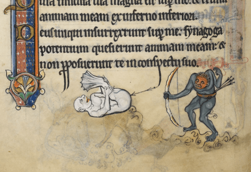 Ecclesiastical apes from a Psalter, Bodleian MS Douce 6, fol. 95v. Courtesy of Oxford, Bodleian.
