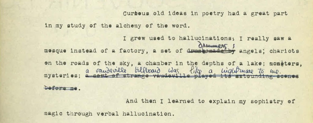 CC: Breon, in a previous interview, you spoke about the difference between the translatorsโ archive and the poet-translatorsโ archive. I worked on a research project some years ago that started out as a project for Ammiel Alcalay at CUNY for his great Lost and Found research publication series. One of the researchers involved in that group had come across a partial Muriel Rukeyser translation of Arthur Rimbaud dating from the 1940s, this was in the Berg Collection at the New York Public Library. The people that were involved didnโt work with French or translation, so Ammiel reached out and asked me go in to evaluate it. Following the archival thread, I ended up getting lucky and finding the rest of that same draft and part of a different draft that completed her translation of A Season in Hell; these were in with her papers in the Library of Congress. So between the two archive sites, I was able to put together a full manuscript, which was pretty cool.