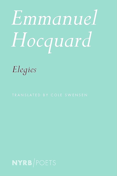 Hocquard, Emmanuel. Elegies, translated from the French by Cole Swensen. NYRB Poets, 2026. ISBN 9781681379920. 160 pages. Paperback $20.00.